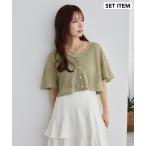 tシャツ フロントボタン袖ギャザーアンサンブルトップス レディース