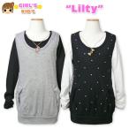 女児キッズ Lilty ストーン付きチュニック×ネックレス付無地長袖Tシャツアンサンブル100cm 110cm 120cm 130cm