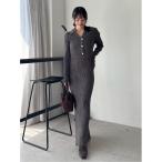 新作10%OFF フレイアイディー FRAY I.D ワンピース 25秋冬 ポロカラーアンサンブルリブニットワンピース ロング丈 半袖 ノースリーブ