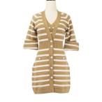 【中古】美品 CHANEL シャネル カシミヤ ボーダー ロングニットカーディガン タンクトップ アンサンブル P51680/P51639 サイズ34 ベージュ レディース Luxs ブランド古着のリュクス