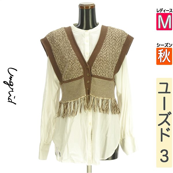 \秋冬物20%OFFクーポン対象×ポイント10倍/アングリッド Ungrid アンサンブル レディース 秋 ブラウン M バンドカラーブラウス+ニットベスト 【中古】【古着】【セール】