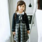 ワンピース リボンタイ付きチェックワンピース+ボレロアンサンブル(110~130cm) キッズ 子供服 女の子