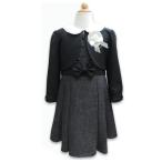 キッズ フォーマルワンピース3点セット コサージュ付きアンサンブル ボレロ&ワンピセット 入学式 入園式 卒業式 卒園式 女の子 お受験 黒×ツイードワンピース