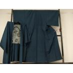 平和屋着物▽男性 紬 アンサンブル 単衣 濃藍色 正絹 逸品 AABF6006jh