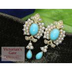 Victorian's Gate ヴィクトリアンズ・ゲート アンティーク風ジュエリー 宝石質ターコイズ(トルコ石) K10ピアス ゴシック調 存在感大(K18対応可)受注品/