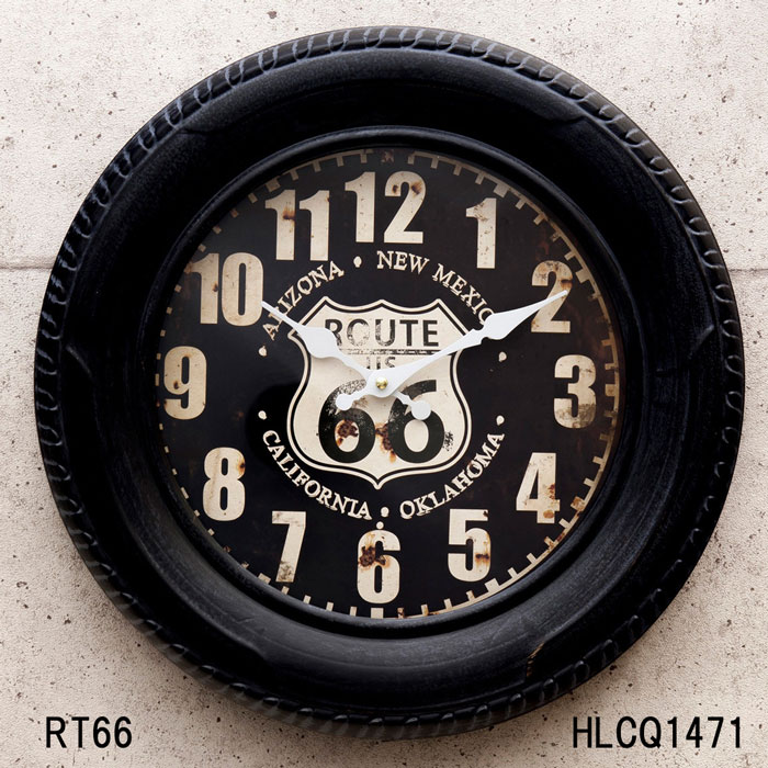 送料無料 アンティーク タイヤ クロック 【壁掛時計】 HLCQ1471 時計/個性的/お洒落/タイヤ/車/アメリカン