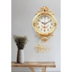 壁掛け時計 掛け時計 振り子 振子時計 エレガント アンティーク レトロ ウォールクロック ロココ 丸 華やかローズ ゴールド 新生活