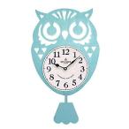 ケーアイジャパン 壁掛け時計 ふくろう 振り子時計 ブルー 42×25cm (おしゃれ な アンティーク調 シャビー加工 、ガラスなし)