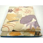 平和屋着物◎アンティーク 大正ロマン 両面全通柄京袋帯 扇面草花文 金糸 正絹 逸品 DABB0171ud