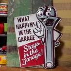 アンティークエンボスプレート ダイカット ブリキ看板 STAYS IN THE GARAGE