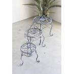 フラワースタンド ラウンドスタンド 3点セット グレー ポルヴィ 花台 アイアン ガーデニング フラワーラック 店舗什器 アンティーク調 フレンチカントリー シャ