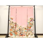 平和屋本店●極上 アンティーク 大正ロマン 振袖 鳳凰雲取り枝花文 暈し染め 金彩 紅梅色地 逸品 CYAA4392s6