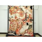 平和屋本店●極上 アンティーク 大正ロマン 振袖 駒刺繍 正倉院飛鶴花文 黒地 金彩 逸品 CZAA4907s6