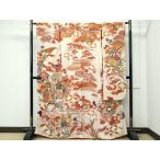 平和屋本店●極上 アンティーク 大正ロマン 中国三大刺繍 相良刺繍 振袖 松竹梅 蓑亀 鶴 金糸 赤橙色地 逸品 CYAA4166s6