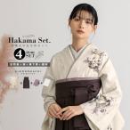 先生袴 セット 4点セット「訪問着:ベージュ ブーケ+袴:アンティークブラウン 椿+袴下帯:ダルパープル 麻の葉+襦袢」卒業式 女性 レディース(メール便不可)