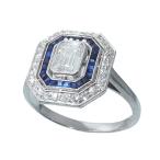 ミキモト MIKIMOTO 超希少アンティークリング エメラルドカットダイヤモンド Pt950 カリブレカットサファイア 10.5号【RB】
