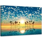 海 アートパネル 壁掛け キャンバス 絵画 新品 現代アート 絵 キャンバス画 30x40cm ヤシの木 海岸 太陽 開運 インテリア アートポスター