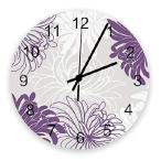 【並行輸入品】 フラワー壁掛け時計 静かなティッキングなし、パープルホワイトデイジー 抽象アート モダンフローラルクロック、電池式クォーツ