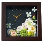 ホワイトグリーン アートフラワー時計 正方形 名入れ ご両親贈呈用 結婚式 ウェディング 花 親ギフト ハナコトバ
