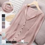レディース カーディガン ファンアート 長袖 無地 ボタン フード付き 日焼け防止 UVカット 上質 薄手