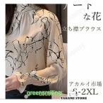 アートに描く花 ネックブラウス トップス ブラウス 春 秋 クラシカル レディース 長袖 トップス レディース 春 体型カバー通勤 OL