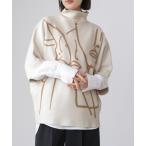 ニット セーター アート柄ランダム刺繍キーネックニット レディース