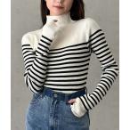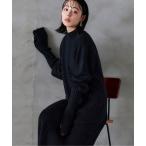 ニット セーター アームウォーマー風ハイネックリブプルオーバー レディース