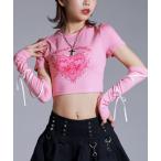 tシャツ エンジェルプリントアームウォーマー付半袖カットソー レディース