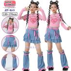 キラキラ ブルー キャミソール パンツ アームカバー レッグウォーマー キッズ ダンス衣装 セットアップ 上下セット 韓国 jazz おしゃれ 女の子 へそ出し Tシャツ