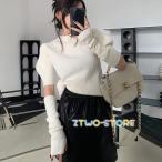 5色有り レディース セーター ニット 半袖 アームウォーマー付き ハイカラー タートルネック トップス プルオーバー 無地 通勤 オフィスカジュアル シンプル