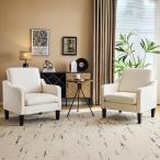 【並行輸入品】VINGLI モダンアクセントチェア 2点セット ベージュ リビングルームチェア 快適なアームチェア 寝室用 布張りのソファチェア