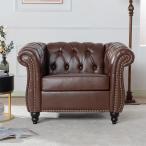 【並行輸入品】LEVNARY レザーチェスターフィールドチェア ミッドセンチュリーモダン シングルソファチェア 房状の布張りのロールアームチェア