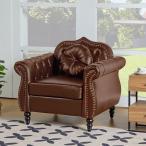 【並行輸入品】RUSTYER アクセントチェア モダン チェスターフィールド レザー PU リビングルーム アームチェア ミッドセンチュリー モ