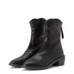 ブーツ レザー調 バック ファスナー アーモンドトゥ ショート ブーツ レディース