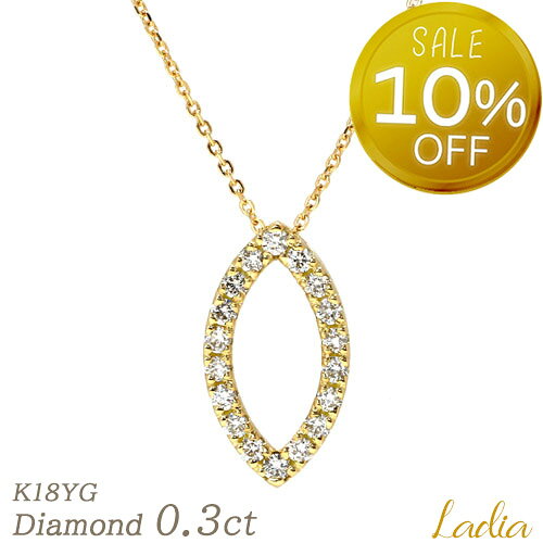【10%OFF★スーパーSALE】Xmasセール開催中 ダイヤモンド ネックレス K18YG 0.3ct 天然ダイヤ アーモンド リーフ マーキス マーキース ゴールド イエローゴールド 18金 スライドアジャスター 彼女 女性 大人 レディース アニバーサリー 記念日 結婚 クリスマス プレゼント