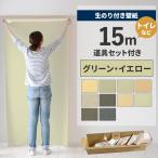 壁紙 のり付き 15m 道具 セット クロス 張り替え 自分で 無地 黄色 イエロー 緑 グリーン 貼り方マニュアル付き 初心者セット トイレ