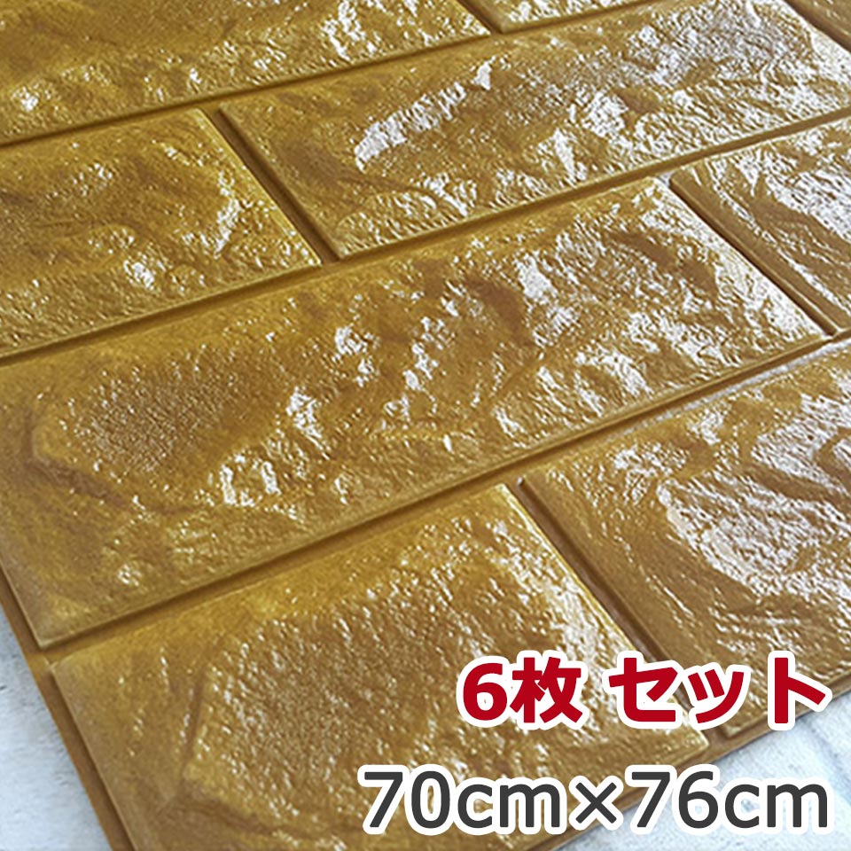 壁紙 レンガ 【お得な壁紙シール6枚セット】 壁紙 レンガ シール のり付き クロス 壁用 シート ブリックタイル レンガタイル ヴィンテージ ストーン レンガ柄 アクセントクロス リメイクシート [イエロー] 3D 立体壁紙 宅H