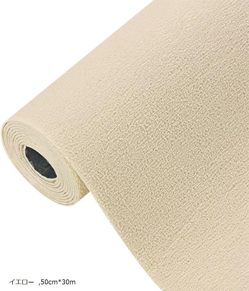 壁紙シール のり付き ざらざら壁貼れる 50cmx30m 賃貸OK 10倍以上の厚さ 厚手2mm 補修 織物調 クロス 3D アルミシート断熱 防音 防カビ 破れにくい 汚れ・キズ防止 DIY壁紙 イエロー (イエロー, 50cmx30m)