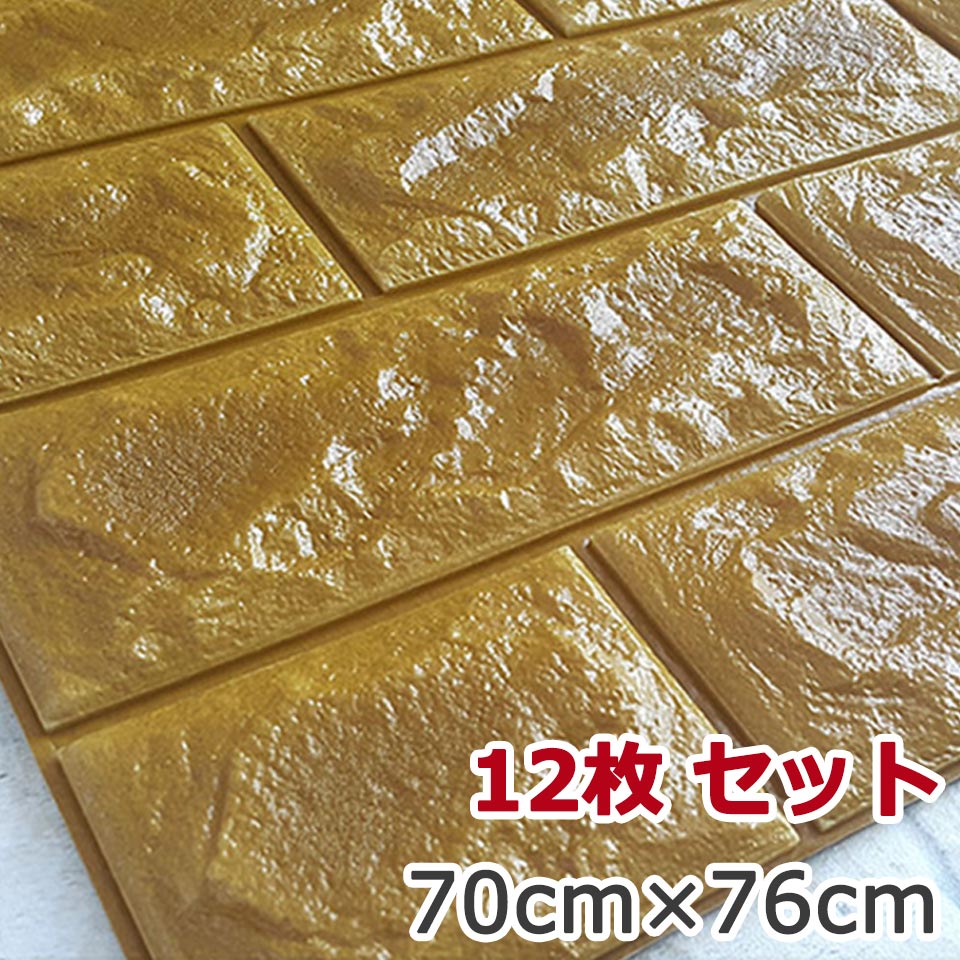 壁紙 レンガ 【お得な壁紙シール12枚セット】 壁紙 レンガ シール のり付き クロス 壁用 シート ブリックタイル レンガタイル ヴィンテージ ストーン レンガ柄 アクセントクロス リメイクシート [イエロー] 3D 立体壁紙 リフォーム 予約販売 壁紙クッション 宅H