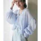 ブラウス シャツ リボンボリュームスリーブシアーブラウス レディース