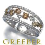 イエロー&ブラウン&クリア ダイヤ ダイヤモンド 0.50ct/0.40ct 透かし リング Pt900 指輪 GENJ