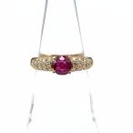 ルビー デザインリング YG イエローゴールド 指輪 メレダイヤ リング 12号 K18 ルビー ダイヤモンド レディース 中古