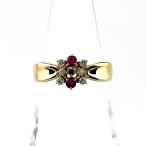 ルビー デザインリング YG イエローゴールド 指輪 メレダイヤ リング 12号 K18 ルビー ダイヤモンド レディース 中古