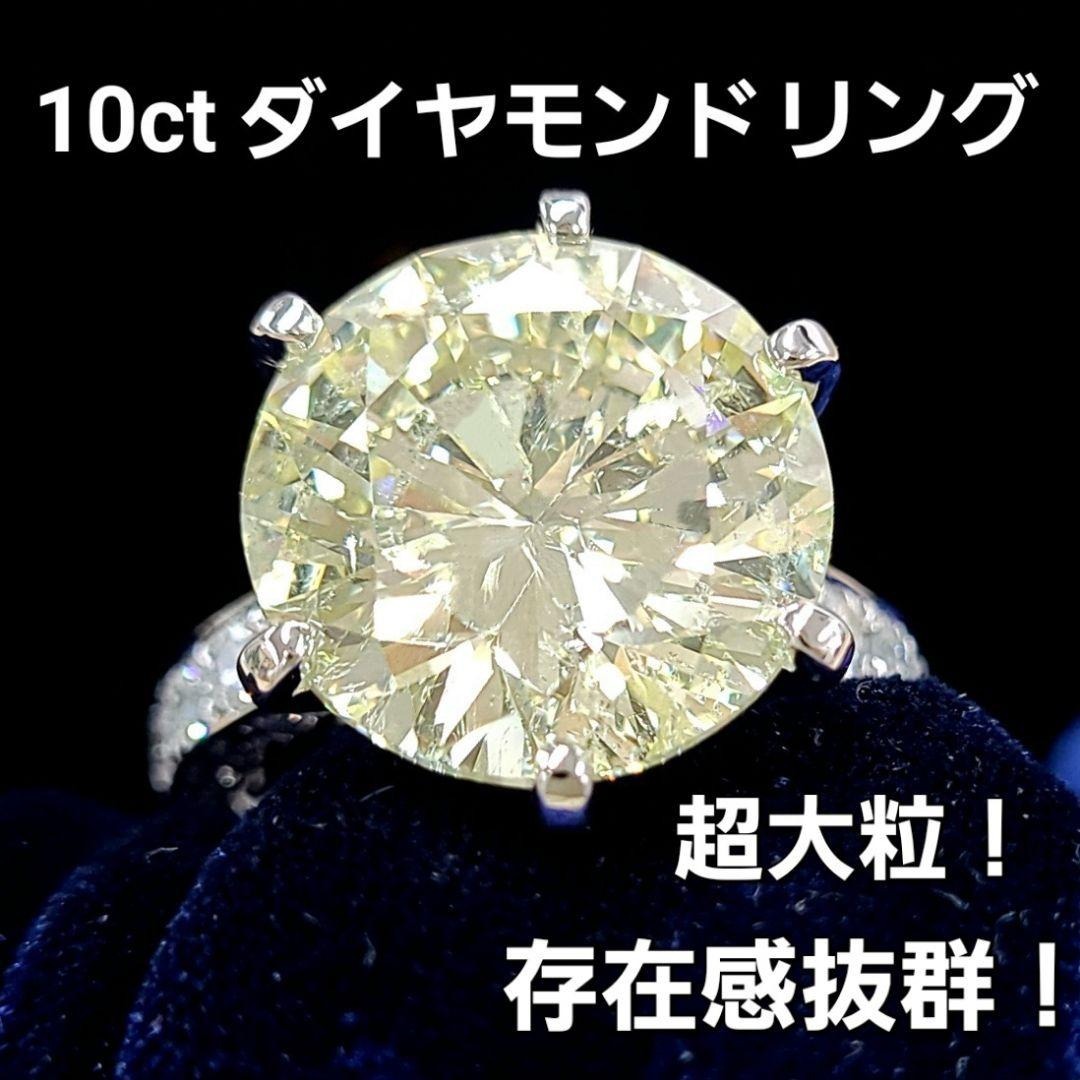 超大粒!煌めきの頂点 10.467ct・Light Yellow・VERY GOOD 天然ダイヤモンド プラチナ PT900 6本爪 リング 鑑定書付