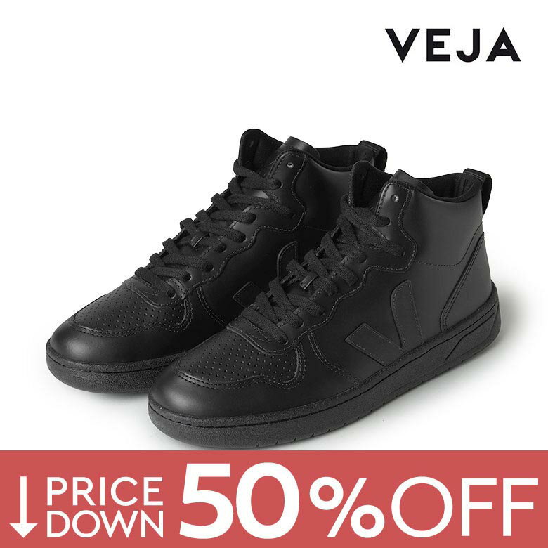 【50%OFF!】VEJA メンズ スニーカー V-15 V15 FULL BLACK フルブラック ベジャ ヴェジャ レザースニーカー ハイカット 小さいサイズ 大きいサイズ【返品不可】