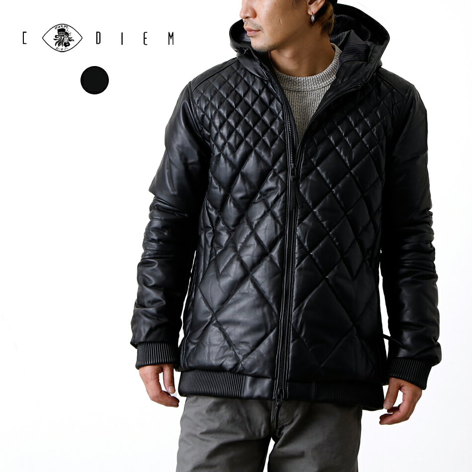 【SALE 半額 50%OFF】【121,000→60,500】C DIEM カルペディエム 本革 レザー キルト ダウンジャケット メンズ ブランド 高級 アウター パーカー フード ライダース 羊革 ラム革 バイカー 防寒 軽量 ヒース M/L/XL 30代 40代 50代 60代