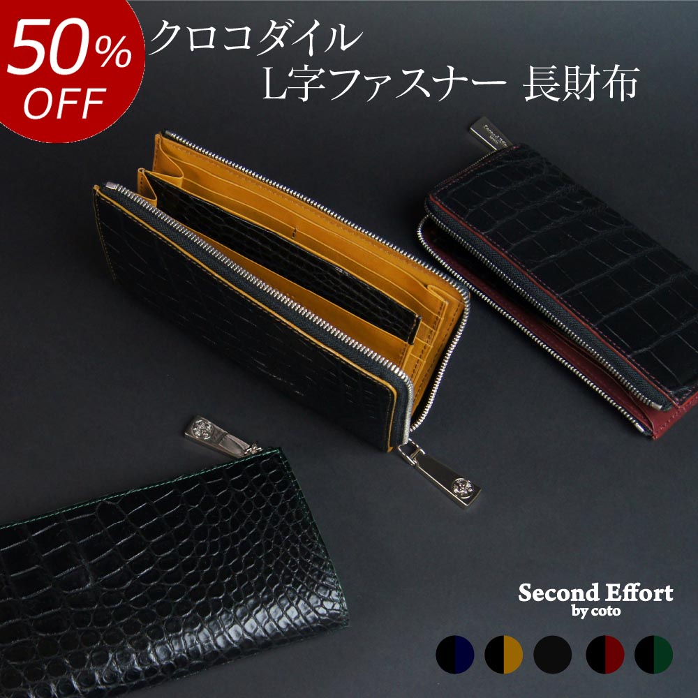 【50%OFF ¥44,000引き 楽天スーパーSALE】クロコダイル 財布 L字ファスナー 革 薄い 本革 長財布 日本製 お財布 クロコダイル財布 クロコ財布 メンズ レディース 本革財布 軽量 スリム シンプル 軽い 柔らかい ビジネス財布 丈夫 通勤財布 ブランド セカンドエフォート