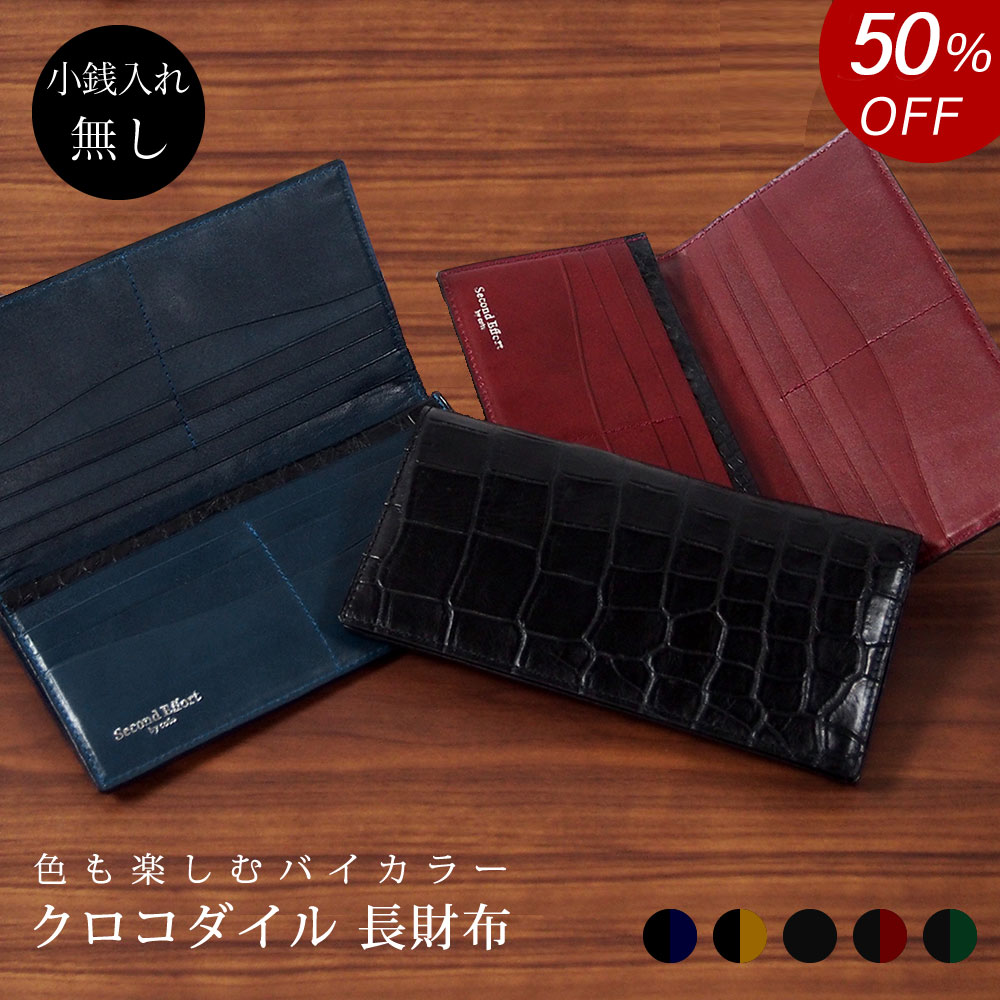 【50%OFF ¥38,500引き 楽天スーパーSALE】クロコダイル 財布 革 薄い 本革 長財布 日本製 [小銭入れ無し]かぶせ メンズ レディース マット仕上げ バイカラー 高級 軽量 スリム 薄型 札入れ 束入れ 軽い 柔らかい 本革 ビジネス 通勤 カジュアル 使いやすい ブランド