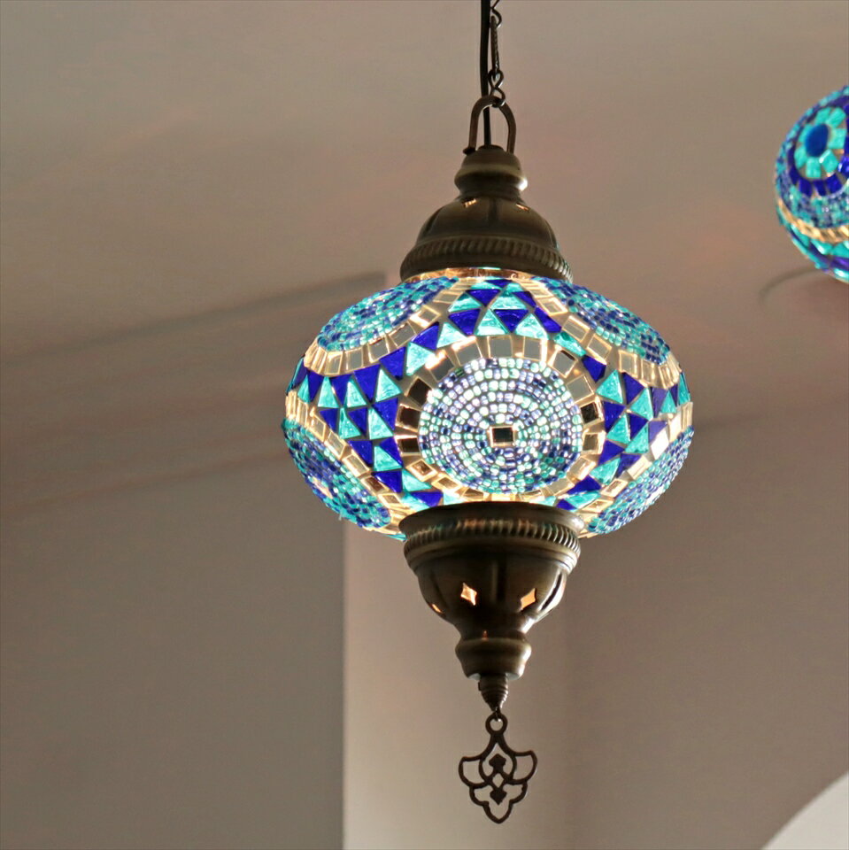 【10%OFFクーポン対象】トルコランプ モザイクランプ ペンダントランプ 直径16cm ブルー E17 25W