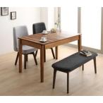 回転イス付き ウォールナット3段階伸縮ダイニングセット 4人 4点セット(テーブル+チェア2脚+ベンチ1脚) W120-180 組立設置付